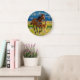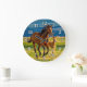 Um cavalo único com um relógio decorativo de parede. Um excelente adicional em qualquer casa. Também faz uma ideia de presente de excelente.