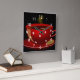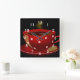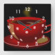 Este relógio apresenta uma foto de uma xícara vermelha de café com um padrão de bolinhas branca. Um relógio de excelente para amantes de café e parece excelente na cozinha, no café ou no compro de café.