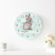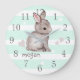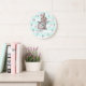 O relógio de parede minimalista bonito tem coelhinhos e corações amigáveis, peça perfeita para o berçário. Personalize com o nome do bebê ou mensagem pessoal. Um presente perfeito com propósito.