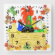 Nosso design original desse adorável clã de frango do campo com folhas do outono caindo por toda parte. Este relógio de parede fantástico seria um presente perfeito para a cozinha de qualquer um.