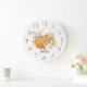 O relógio da parede de decoração da enfermaria apresenta uma adorável raposa dormindo.