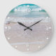 Adicione um pouco de calma e serenidade a qualquer quarto, com este relógio de parede de amor, com uma foto de ondas ondulantes na praia. Números brancos e pontos ao redor da borda do relógio. Personalize para adicionar texto, se desejar.