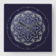 Decorra seu espaço com este bonito relógio, com uma mandala em forma de oito pontas, incluindo os motivos nativos americanos e símbolos da natureza. Em índigo gradiente e azul marinho com branco. O anel externo com entalhes durante as horas é um modelo amovível se você preferir um design mais limpo.
