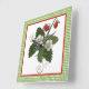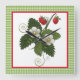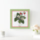 Este alegre relógio de parede apresenta uma borda verde de gingham com uma planta de morango no centro. Um relógio decorativo que complementará uma cozinha estilo country.