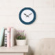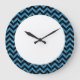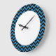 Hip e Trendy Chevron Glitter Look Clock. Este relógio legal apresenta um padrão de zag em forma de guincho em cima de um fundo brilhante azul de arte digital. Adicione texto a este design para lhe dar um toque pessoal.