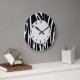 O Custom Wall Clock tem um padrão divertido de faixas de impressão em preto e branco com uma cara de relógio de fonte matissa.