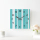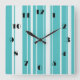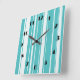 Relógio de Parede Personalizado com um padrão de listras brancas e turquesa e uma face do relógio de fontes da Broadway.