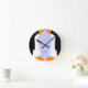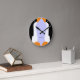 Este relógio de parede apresenta dois pinguins ilustrados virados um para o outro. Cada pinguim tem asas e costas pretas, uma frente branca, olhos pretos e brancos, e pés cor de laranja e bico. A cor de fundo é azul pálido, mas você pode mudar isso. Há um espaço reservado para o seu nome. O relógio é personalizável. Use a opção Escolher seu estilo para escolher o tamanho (médio ou grande) e a forma (redondo ou quadrado). Use o botão Personalizar para personalizar totalmente o design.