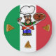 Aqui está um relógio divertido para a pessoa que ama pizza! Ou para um restaurante italiano de pizza? O fundo é a bandeira da Itália. Depois temos o nosso cozinheiro de pizza com 3 fatias de pizza nas 3, 6 e 9 marcas. Este design só ajustado em relógios redondos pequenos ou grandes. Desenhado por Sheila Cicchi, Brownielocks.com. Todos os Direitos Reservados.