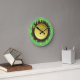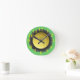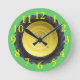 Fotografia de pneu de trator centrada em relógio com fundo verde (personalizável). Números amarelos.