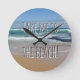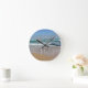 Traga tranquilidade para sua casa com este relógio decorativo de parede inspirado na praia, com uma fotografia de rolar ondas e areia ouro do oceano azul aqua. As palavras, "Leve-me à praia" estão em texto na moda, branco costeiro e preto. Personalize esse relógio escolhendo de outros tamanhos ou a opção das mãos de cinza.