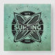 Estilo do Crachá Os recursos gráficos do surf atravessaram as surfboards e o texto em negrito "surf" do centro. Fundo de cor verde