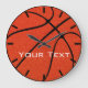 Relógio de Parede de Texto Personalizado da Equipe de Basquete: Faça seu próprio relógio personalizado de parede de basquete digitando qualquer texto na caixa de texto. Você pode digitar um nome de equipe, nome de escola, nome de jogador, etc. Pareceria excelente em uma academia de basquete, no escritório do treinador, ou em casa como decoração.