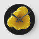 Este relógio fantástico mostra uma bela fotografia de uma tulipa amarela no florescimento do cheio. A foto foi tirada usando macro fotografia para realmente trazer a cor vibrante da flor e o detalhe fino em suas pétalas. A flor foi cortada da foto e colocada sobre fundo preto para dar um impressionante contraste.