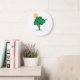 Relógio de parede ilustrado de árvore e sol, adequado para quartos de crianças.