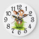 Um Adorável Relógio De Parede Numerado Projetado Com Uma Vaca Castanha-Do-País Que Detém Uma Margarida Para Aqueles Cozinheiros De Fábrica