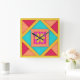 A arte original em forma de colcha apresenta um Quadrado em um bloco Quilt Quadrado com uma flor central em cores vibrantes e dinâmicas. Este relógio faz um presente de excelente para um amante de colcha ou colcha. As cores brilhantes incluem laranja, amarelo, rosa e vermelho.