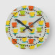 Personalize esta parede temática de café da cozinha redonda com o seu nome ou outro texto. Apenas edite no editor fácil do Zazzle. Criado com xícaras de café em cores retrógradas.