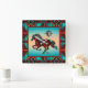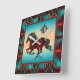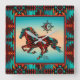 Este é um único "Um dos tipos" Relógio de Cavalo do Sudoeste! Apresenta um Galopante do Cavalo Sudoeste em um Fundo Turquesa e Laranja Sunset... cercado por uma Fronteira Sudoeste de Turquesa, Laranja e Preto! Design De Arte Original Pelo Artista Kerry Miller.