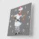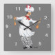 Uma pintura original de um cozinheiro de Anne Ormsby enfeita este divertido relógio de parede.