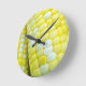O Corn Wall Clock tem a imagem de um autêntico milho fresco no berço. A foto brilhante e ousada foi tirada no mercado de um agricultor local.