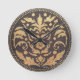 Belo relógio de parede que representa um trabalho de arte damasceno totalmente original típico de Toledo, Espanha. Damascening é um artesanato antigo que envolve a decoração de objetos de aço com designs de ouro e prata para criar criações de beleza excelente e delicada artesanato. O contraste entre o negro e o brilho dos metais preciosos cria peças impressionantes e luxuosas. Este design de relógio de parede é um tributo do designer a esse lindo trabalho de arte que ainda é produzido em Toledo. Este relógio de parede está disponível em dois tamanhos e precisa de uma bateria que não esteja incluída.
