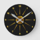 Um na moda clássico na sua parede que também é funcional! Este relógio tem um fundo de designer preto com números falsos de aparência metálica e sotaques gráficos elegantes. É um presente de excelente barato para casa ou escritório.