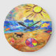 Encomenda seu bloco de designer por Debbie Davidsohn para sua casa, escritório, apartamento ou estúdio. A trabalho de arte mostra uma cena de praia em cores brilhantes, um cachorro pequeno e peixes grandes em cores fluorescentes. Personalize este produto escolhendo o pequeno relógio, o maior relógio redondo ou o relógio em forma quadrada. Estes fazem presentes de excelente por quase qualquer ocasião. Excelente para temas de praia e casas de praia.
