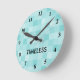 Relógio de padrão de mosaico azul turquesa com eterno. Cor personalizável e texto personalizável. Design impressão moderno e bonito com diferentes tons de cor. decoração de na moda.