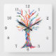 Este relógio branco é decorado com um impressão de uma árvore da vida design em cores arco-íris. A árvore foi originalmente feita em mosaico usando pequenos fragmentos de vidro de cor clara. Porque nós criamos nosso próprio trabalho de arte você não encontrará essa imagem exata de outros designers. Mosaico original © Michele Davies.