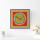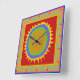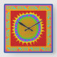 Relógio da parede do sudoeste del sol. Relógio da parede do sol. Relógio de parede quadrada acrílico amarelo alaranjado. Virginia Vivier, Vagabond Folk Art.