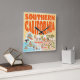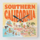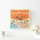 A ilustração de desenhos animados e brilhantes oferece uma visão caprichosa do sul da Califórnia - personagens bonitinhos apreciam o sol quente da Califórnia mostrando Los Angeles, San Diego, Riverside, Palm Primaveras, Anaheim e Long Beach bem como as cidades fronteiriças de Tijuana, Tecate e Mexicali.