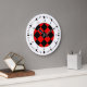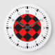 Um relógio de parede com tema de corrida de quadrados pretos e vermelhos na face central, números pretos e minutos marcados em preto sobre fundo branco. Clique em Personalizar para alterar as cores de fundo e muito mais.