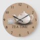 Este relógio único com as imagens de um bule e uma xícara de chá ficará perfeito em sua cozinha ou sala de jantar.