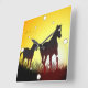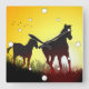Dois cavalos correndo no campo no nascer do sol da manhã inicial com pontos de platina para marcadores de posicionamento de tempo
