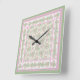 Relógio de Parede Quadrado, com um bonito padrão de Dogroses sobre fundo esticado dentro de uma fronteira de motivos Dogrose. Parte da coleção Posh & Painterly 'Rosy Posy'. Adicione uma moldura de madeira para usar como trivit.