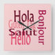 Diga olá em cinco idiomas com um relógio rosa na parede. Este relógio vai adicionar uma bela cor à sua parede, é perfeito para decorações de salas para raparigas.