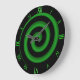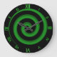 Um legal relógio preto e verde, com aparência hipnótica, com números numéricos verdes semelhantes.Esta é uma peça excelente para uma sala divertida, um dormitório ou qualquer pessoa para ficção científica e mística