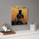 Guerreiro Nativo sobre Cavalo em Montanhas, relógio de parede gráfico icônico End da Trilha. Personalize este design com sua própria foto e texto para um presente personalizado.