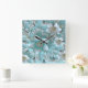 Relógio de Parede Floral Branco Teal