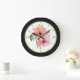 Bonito relógio de bolinhas preto e branco, com círculo verde e branco, no meio, com lindas flores pintadas de aquarela. Marcas verdes de hora, corram ao redor da borda do círculo branco. Personalize para adicionar seu próprio texto ao relógio adorável.