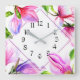 Relógio de paredes florais, cor-de-rosa e púrpura / violeta