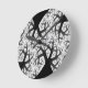 Este design de relógio fantástico foi criado de um fractal. Ele se parece com um aglomerado de árvores negras com troncos negros e galhos tortos contra um céu noturno branco iluminado pela lua. Parece que você está deitado no chão olhando para o céu dentro de uma floresta densa e assustadora. Que sua imaginação corra.