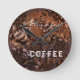 Um relógio de parede com um design de café com tema de café com feijão e textos estilizados de "café". Os pontos sutis para indicar a hora podem ser excluídos se você não precisar deles. Excelente para quem ama café ou compro de café.