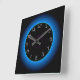 Um design de círculo iluminado azul/aquamarina com fundo preto. Este relógio artístico tem numerais Luna brancos no centro preto. Um design especial artístico com caráter atmosférico. Nota> Este não é um produto de led.