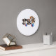 Relógio de parede com ilustração de três cachorrinhos, adequado para quartos de crianças.