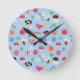 Um relógio de parede infantil brilhante e alegre com bugs fofos, abelhas, joaninhas, flores e borboletas em um fundo azul suave — perfeito para decoração divertida de berçário ou sala de brincar.
