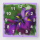 O relógio de parede com uma imagem grosseira ao quadrado de uma íris japonesa roxa em flor. Personalizável ~ adicione texto clicando em "Personalizar!" ~ a cor do plano de fundo também pode ser alterada escolhendo editar>plano de fundo e escolhendo uma cor no gráfico. © Little Wing Fotografia & Design