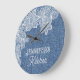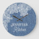 Tick-tock! Adicione um toque de Estilo Azul Jean à sua Parede com este Relógio Personalizável de Denim! Jeans Clássicos Blue Denim com Relógio de Parede de Textura apresentando um Belo Design de Lace. Este Relógio não pode evitar atenção desenhar. Blue Jean Clocks faz o presente perfeito para qualquer ocasião ou evento! O Denim e o Lace são Faux e Simulados. Personalize este Blue Jean Lace Clock para o seu conteúdo. Apenas Adicione Seu Próprio Nome!