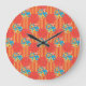 Um bonito relógio de parede estilo country com um padrão de listras, bolinhas e flores distantes. Este padrão ajustado o quadrado ou os relógios redondos.(Coordena-se com a coleção floral laranja, Orange Fizz.)